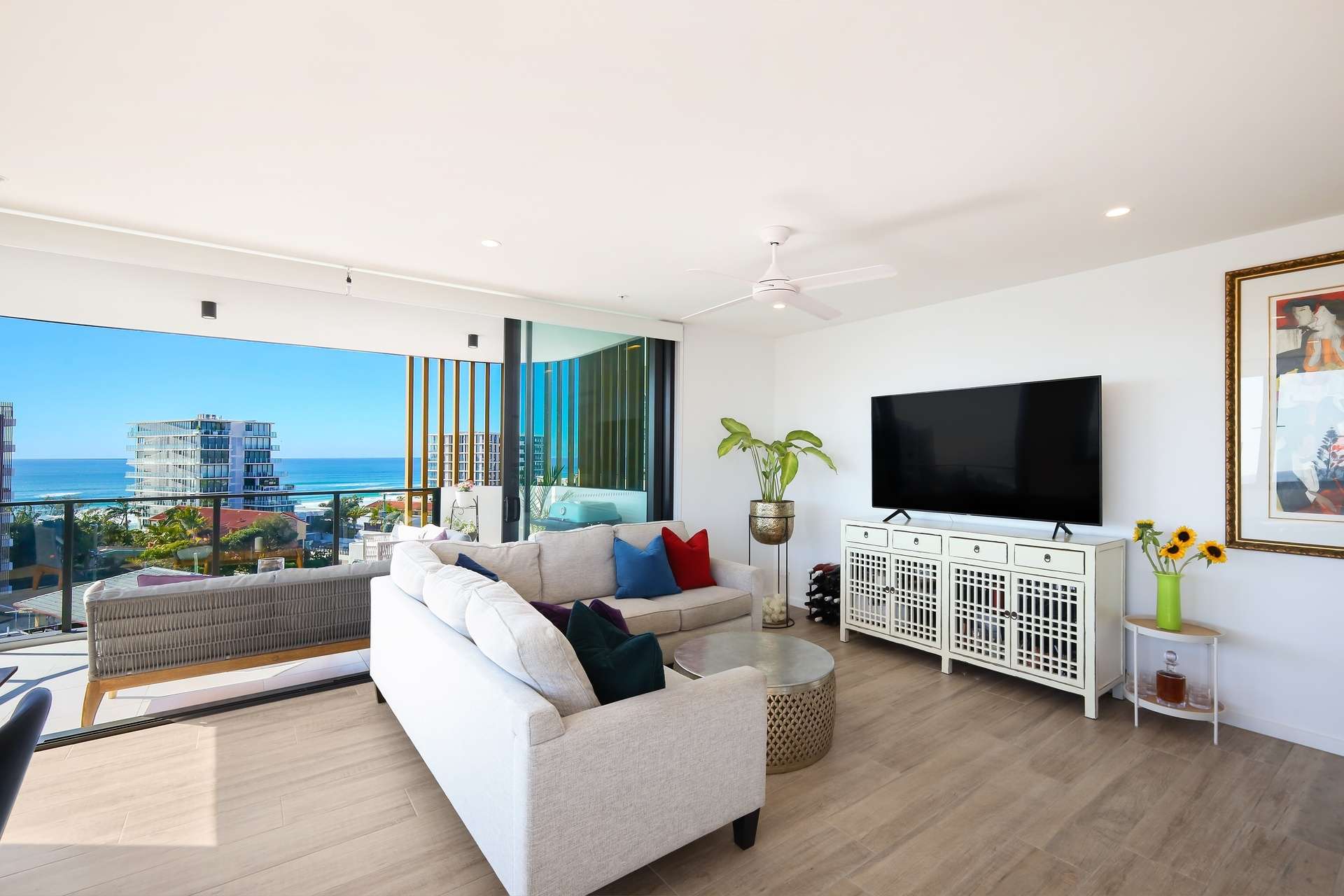 You'll never want to leave this deluxe, near-new apartment, 150m from world-class beaches and on the 8th floor of Palm Beach Residences. Enjoy the panoramic coastal scenery from a curving balcony, or step through floor-to-ceiling glass doors and enjoy the expansive open-plan living and dining array.