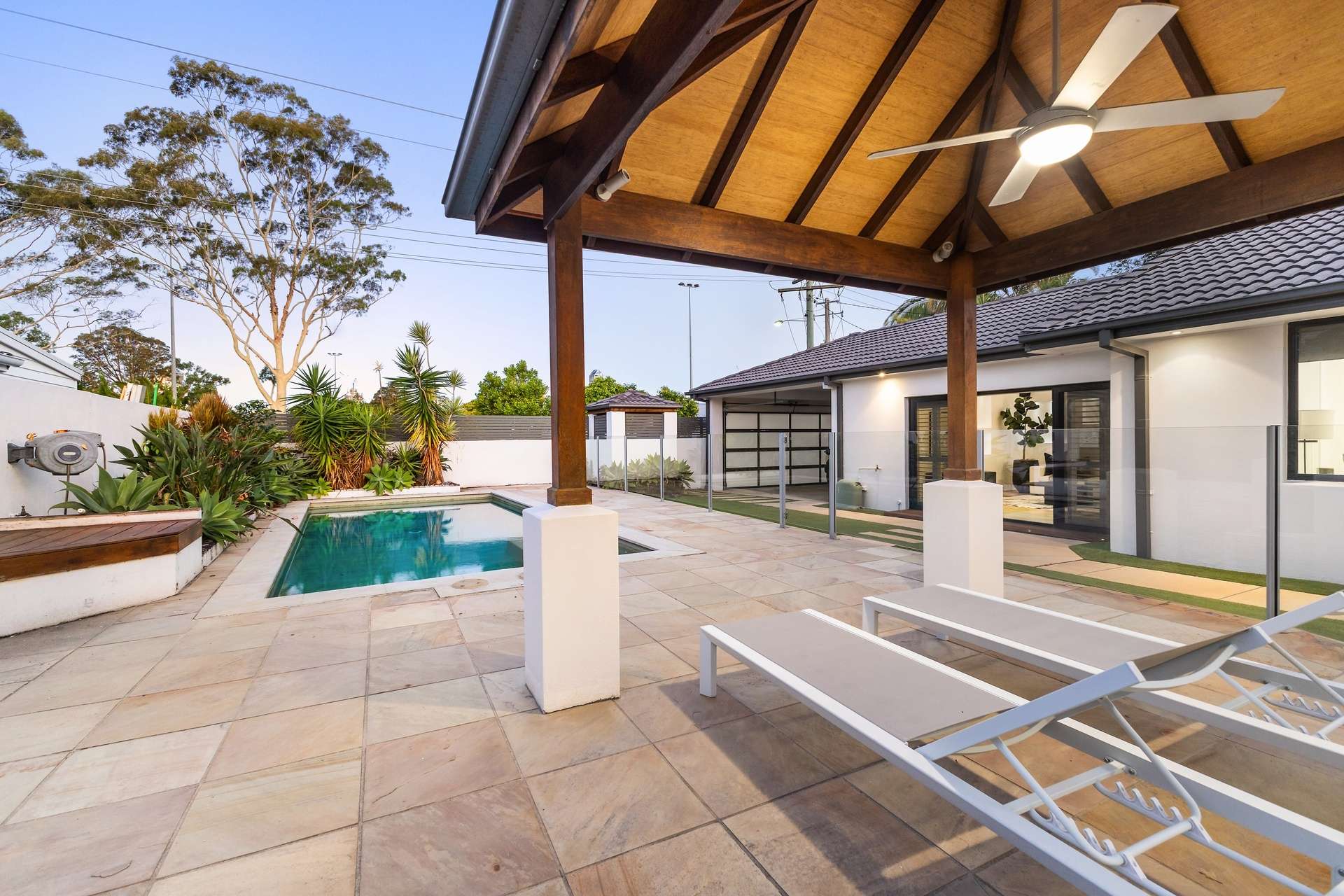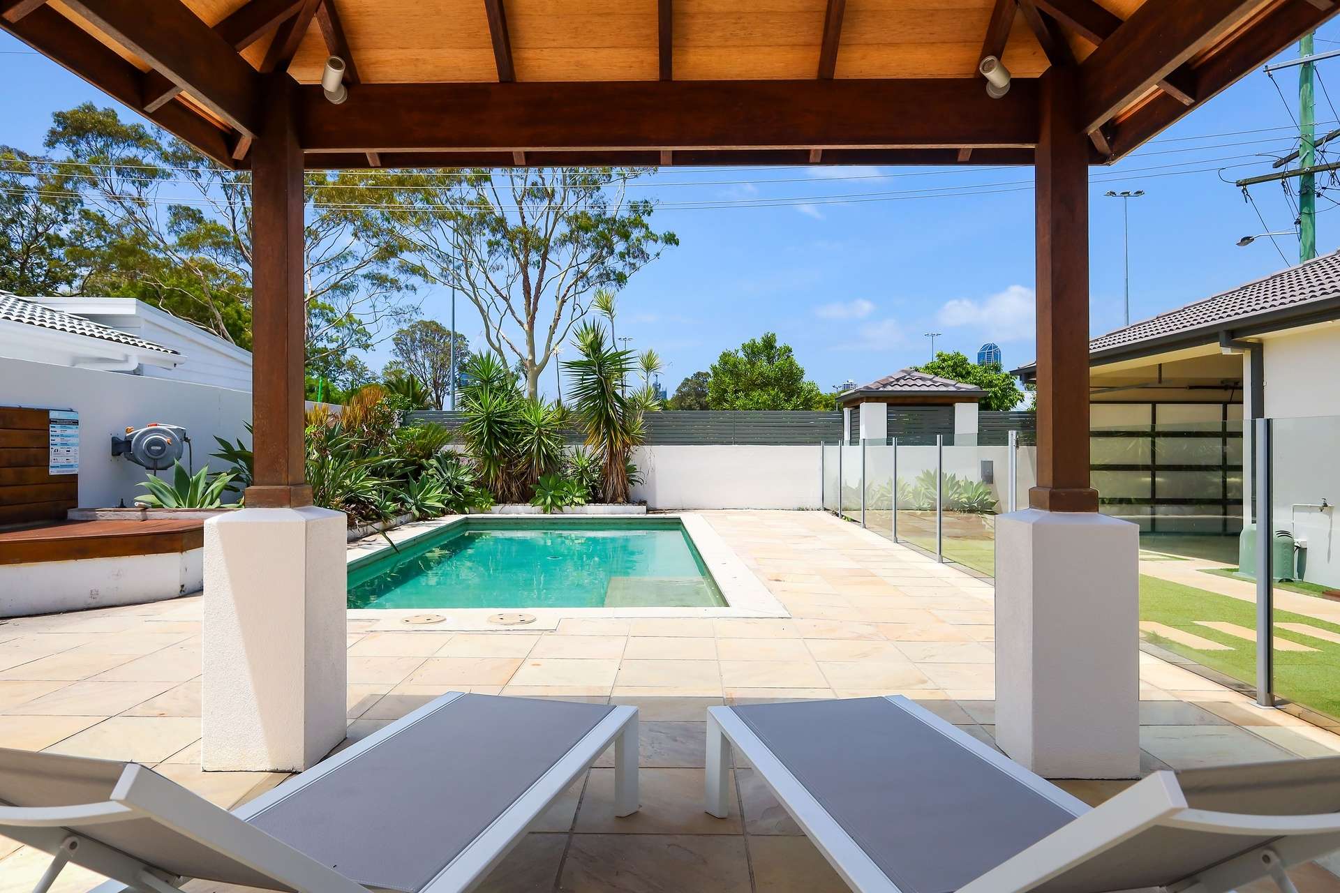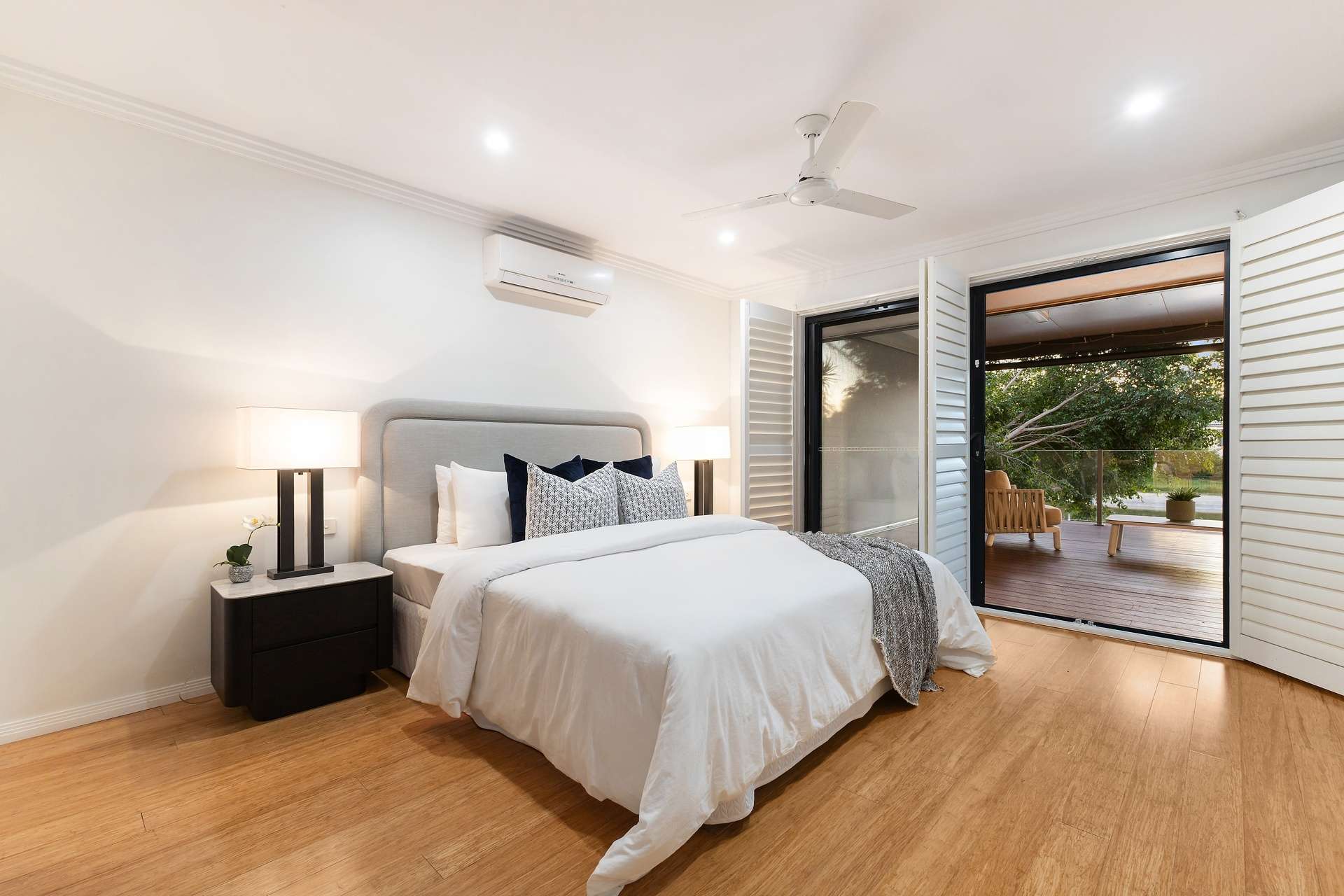 Low-maintenance gardens frame the outdoors, allowing more time to enjoy this exceptional lifestyle on offer. Host large-scale or intimate gatherings on the full-length alfresco deck, equipped with weather-protection screens for year-round enjoyment, or savour sunset drinks on the open-air deck, beneath the shade of a towering palm tree. Aquatic adventures are assured too, courtesy of a pontoon, boat shed, ramp and 18.1m stretch of sandy beach, with a privately placed pool for extra refreshment. Trimmed with sandstone paving, savour sunshine on the built-in bench seating or enjoy summer cocktails in the cabana.