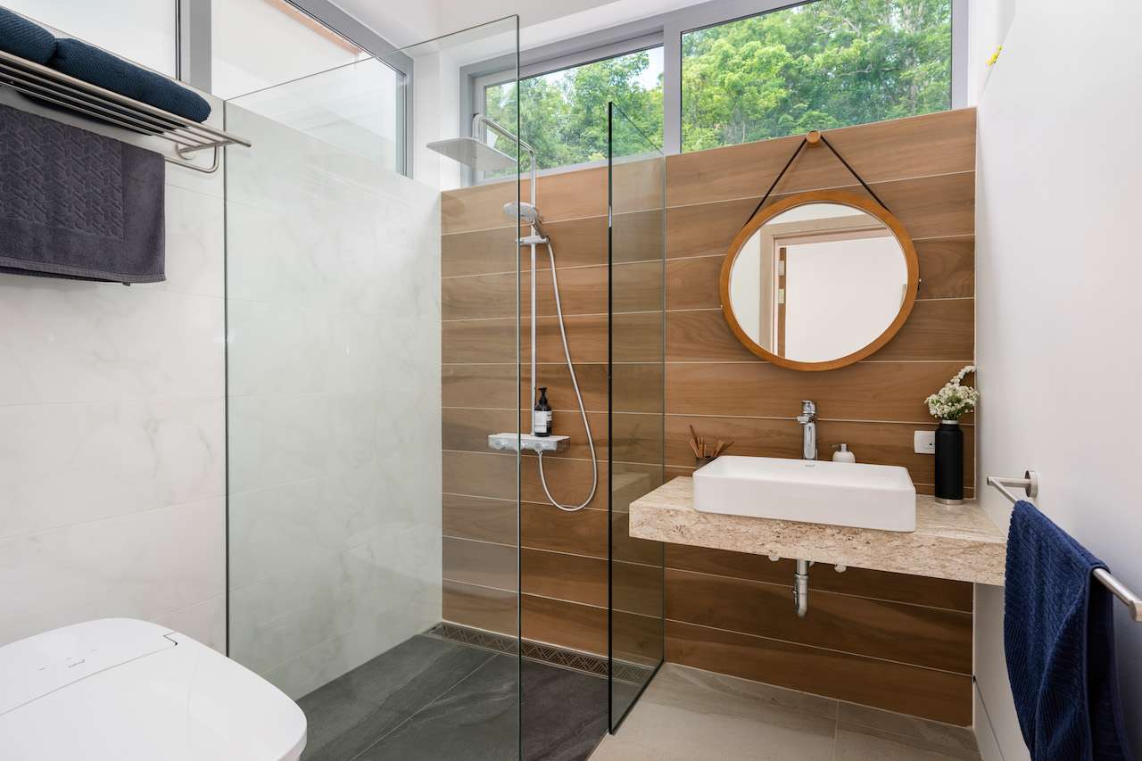 Designed to harmonize with its natural surroundings, Skyfall Villa seamlessly blends contemporary elegance with eco-conscious innovation. The striking two-level design incorporates premium sustainable materials and intelligent home systems throughout. Floor-to-ceiling NZ Nulook aluminium sliding doors with argon-filled double glazing create a fluid transition between indoor and outdoor living while maximizing natural light and energy efficiency. Soft, refined color palettes and superior finishes provide a sophisticated canvas for personalized interior styling.